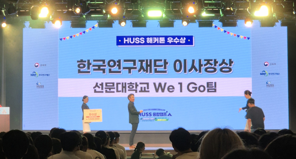 [충청뉴스 박동혁 기자] 선문대학교는 인문사회 융합인재양성사업단(HUSS)이 최근 스플라스 리솜에서 열린 ‘제2차 HUSS 융합캠프 해커톤 경진대회’에서 우수상인 한국연구재단 이사장상을 받았다고 14일 밝혔다. 지난해에 이어 2년 연속 수상이다.