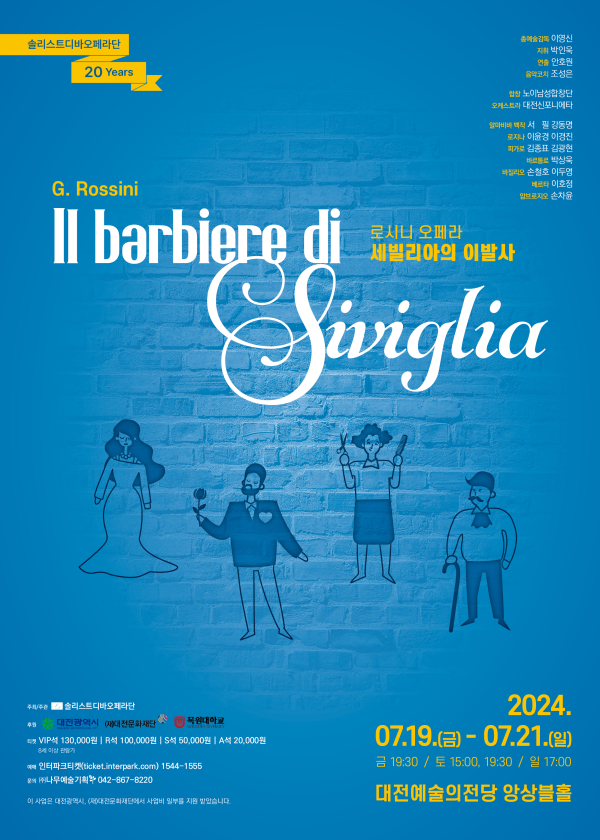 [충청뉴스 박영환 기자] 대전문화재단(대표이사 백춘희)이 운영하는 지역오페라단공연활동지원사업에 선정된 솔리스트디바오페라단이 로시니 오페라 '세빌리아의 이발사'를 개최한다고 밝혔다.