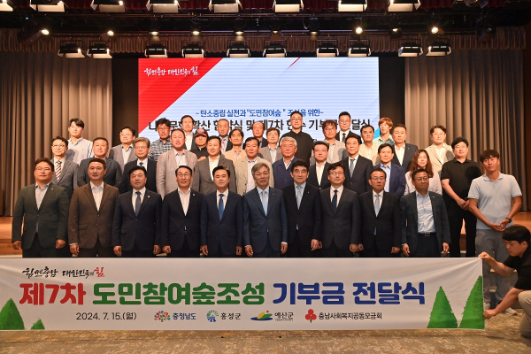 도는 15일 덕산 스플라스 리솜에서 도민 참여 숲 조성을 위한 나눔문화 확산 업무협약식 및 제7차 기부 전달식을 개최했다.