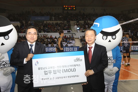 충청남도 교육청(교육감 김종성)은 2일 천안 유관순체육관에서 학생 스포츠 활동 활성화를 위해 현대캐피탈 스카이워커스 배구팀과 업무협약을 체결했다.