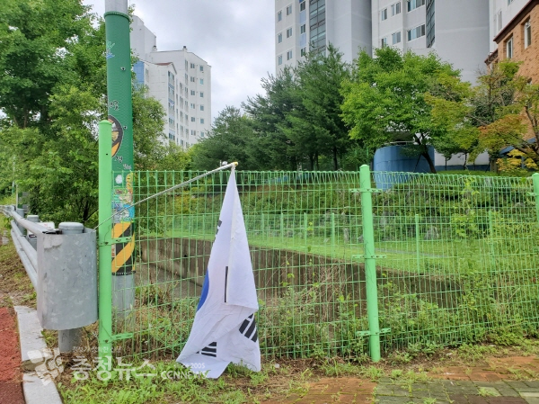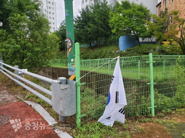 더구나 현장 고발에 담긴 당일은 대한민국 5대 국경일 중 하나인 제헌절. 부러지고 꺾인 태극기가 계룡시의 민낯을 적나라하게 보여주고 있다.