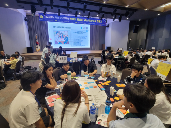 [충청뉴스 권상재 기자] 충남교육청은 17일 예산에 소재한 스플라스 리솜에서 ‘학생이 중심이 되는 미래학교 만들기’라는 주제로 학생 원탁토론회를 개최했다.