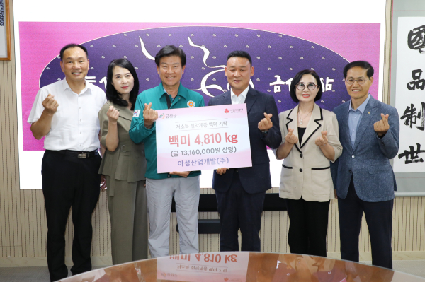아성산업개발은 지난 2020년 금산군에 2000만 원 상당의 물품을 기탁한 바 있다.