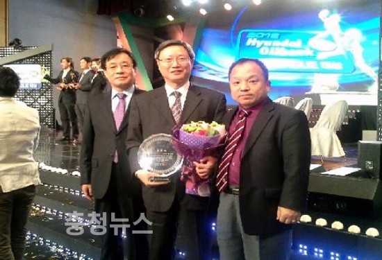 염홍철 대전광역시장이 지난 3일 오후 그랜드힐튼호텔에서 개최된 2012 현대오일뱅크 k리그 시상식에서 한국프로축구연맹(총재 정몽규)으로부터 공로패를 수상했다.