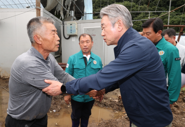 [충청뉴스 최형순 기자] 농협중앙회는 지난 20일 집중호우로 농경지·주택 침수 등의 큰 피해를 본 충남 금산군 농가를 강호동 농협중앙회장이 방문해 피해 상황을 살피고 농업인을 위로했다고 21일 밝혔다.