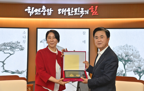 충남도가 키르기즈공화국과 다방면에서 교류 강화 방안에 나섰다(왼쪽부터 아이다 이스마일로바 주한 키르기즈공화국 대사, 김태흠 충남지사)