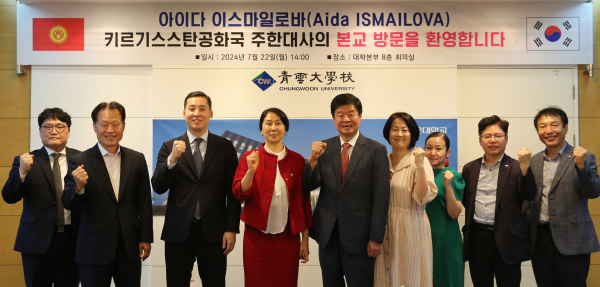정윤 총장은 “그동안 청운대학교는 문화예술, 공연·영상, 호텔·조리 등 K-콘텐츠 분야에 많은 투자와 인재를 양성하고 있으며, 특히, 중앙아시아의 많은 젊은이들이 K-콘텐츠에 관심을 가지고 우리 대학의 문을 두드린다”며 “키르기스스탄공화국의 젊은이들이 청운대에서 한국어를 비롯해 K-드라마, K-푸드, K-패션 등의 분야를 배우기를 희망한다”고 말했다.