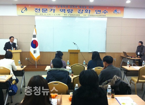 충청남도교육청(교육감 김종성)은 ‘2012 장애학생 성폭력 예방을 위한 전문가 역량강화 연수’를 5·6일 1박 2일간 보령 비체팰리스에서 특수교육지원센터와 특수학교 Wee클래스 성폭력 예방 상담사, 교육전문직, 전문상담사 등 30명을 대상으로 실시했다.