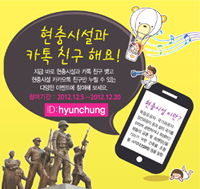 이벤트는 현충시설에 관심있는 카카오톡 사용자라면 누구나 참여할 수 있으며, 아이디로 친구찾기 실행 후 'hyunchung'을 입력해 친구맺기를 하고 연계된 카카오스토리를 방문하면 확인할 수 있다.