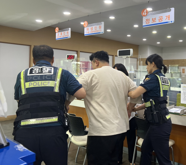 모의훈련은 ▲민원인 진정 유도 ▲폭언 지속 및 폭행 발생 시 사전고지 후 녹화․녹음 실시 ▲청원경찰 제지 및 112 상황실로 연결된 비상벨 호출 ▲피해공무원 격리 및 방문 민원인 대피 ▲특이민원인 제압 및 출동 경찰 인계 등 특이민원 응대 매뉴얼에 따라 진행됐다.