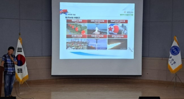 이날 교육은 김남용 홍익대 교수가 강사로 나서 “북한의 도발과 이에 대응하는 우리의 자세”를 주제로 약 1시간 30분 동안 진행됐다.
