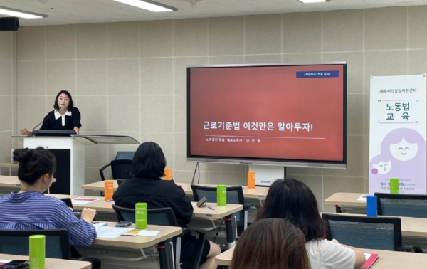 [충청뉴스 최형순 기자] 세종시사회서비스원(원장 김명희)에서 운영하는 세종시직장맘지원센터(대표 홍만희)는 24일 세종여성플라자에서 청년 대상 노동법교육을 진행했다.