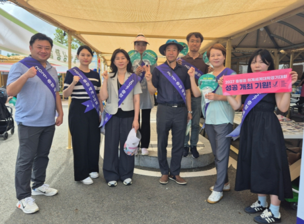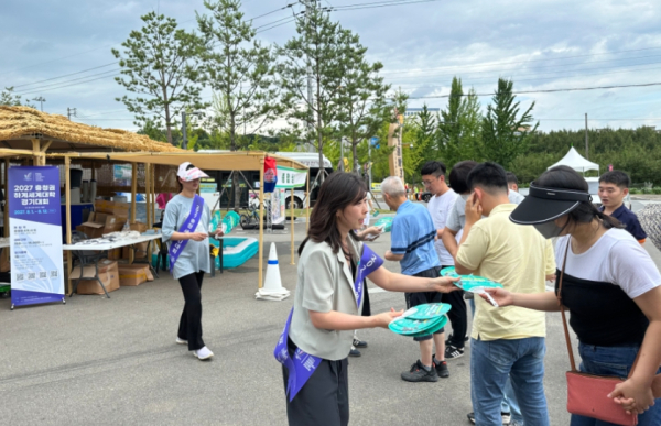 [충청뉴스 최형순 기자] 2027 충청권 하계세계대학경기대회 조직위원회(위원장 강창희, 이하 조직위)는 26일 ‘제22회 세종 조치원복숭아축제’개막 행사장에서 방문객을 대상으로 홍보활동을 펼쳤다.