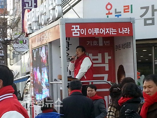 오늘 유세에서 정우택 최고위원은 ‘약속의 대통령 박근혜, 신뢰의 대통령 박근혜를 꼭 선택해 달라’고 했다.