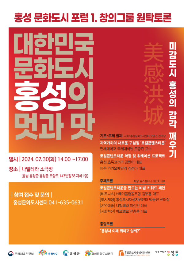 이번 포럼은 홍성군이 대한민국 문화도시로 나가는 데 핵심이 되는 ‘미감도시’ 브랜드를 바탕으로 로컬콘텐츠타운 조성 및 활성화 방안을 중점적으로 다룰 예정이다.