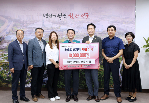 호우로 인해 피해를 본 주민 지원을 위해 지역사회의 따뜻한 구호 손길이 이어지고 있는 가운데 대전광역시건축사회에서도 뜻을 모아 동참했다. 성금은 대한적십자사를 통해 서구 호우피해 가구에 지원될 예정이다.