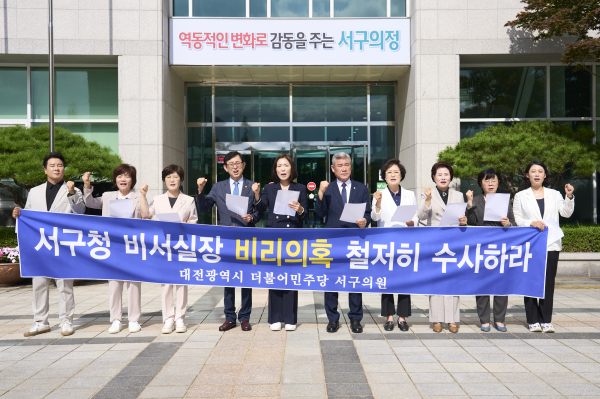 [충청뉴스 박영환 기자] 대전 서구의회 더불어민주당 소속 의원들이 비리 의혹으로 수사를 받고 있는 서구청 비서실장에 대해 철저한 수사를 촉구했다.