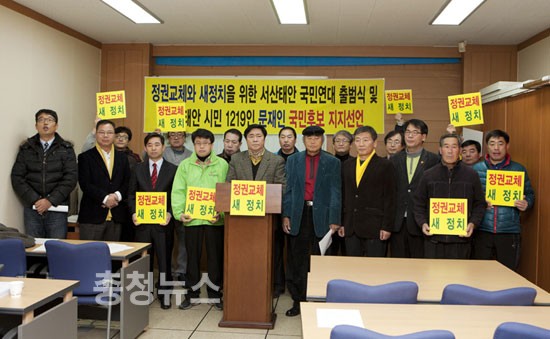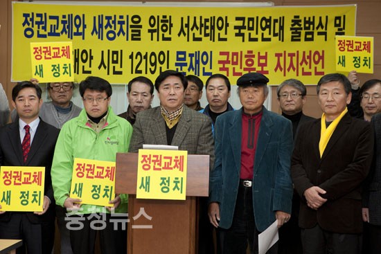정권교체와 새 정치를 위한 서산태안 국민연대(이하 서산태안 국민연대)는 11일 서산시청 브리핑룸에서 기자회견을 갖고 민주통합당 문재인 후보에 대한 지지선언을 했다.