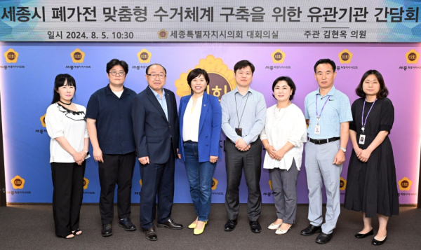 [충청뉴스 최형순 기자] 세종특별자치시의회 산업건설위원회 김현옥 의원(새롬동)은 5일 ‘중·소형 폐가전 맞춤형 수거 체계 구축을 위한 유관기관 간담회’를 개최했다.