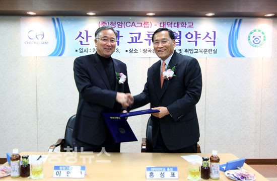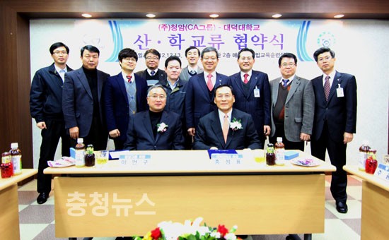 대덕대학교(총장 홍성표)와 (주)청암(CA그룹, 회장 이언구)은 13일 오전 대덕대 정곡관 2층 취업훈련실에서 산학교류협약을 맺었다.