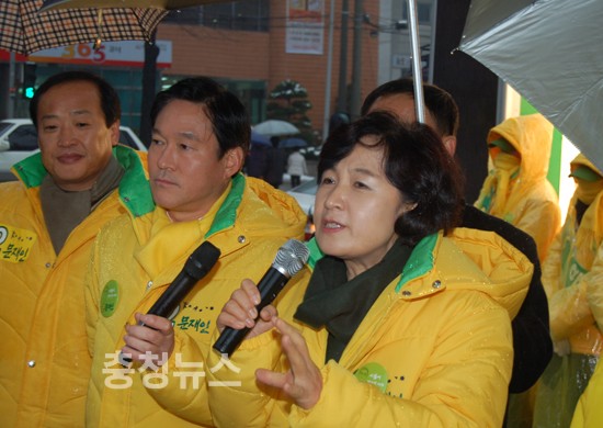 문재인 민주통합당 대선후보 선대위의 추미애 국민통합위원장은 14일 문 후보 대통령 당선을 위한 지원유세를 했다.