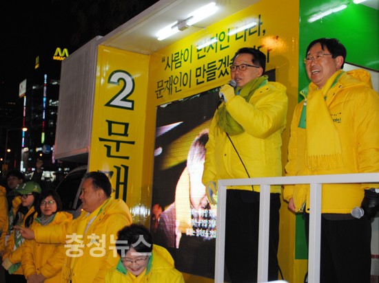 ▲ 박지원 원내대표가 17일 대전 둔산동에서 지원유세를 벌였다.