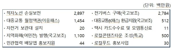 대중교통 이용 활성화를 위해 월 정액권(이응패스) 사업에 14억 5천만 원, K패스 환급지원 사업에 5억 원을 반영하고,
