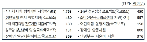 청년 고용 창출을 위해 지자체-대학 협력기반 지역혁신(RIS) 사업에 18억 원, 청년성장 프로젝트에 5억 원을 반영하고, 청년 주거를 강화 지원하기 위해 청년월세 한시 특별지원 사업에 5억 원을 편성하였다.