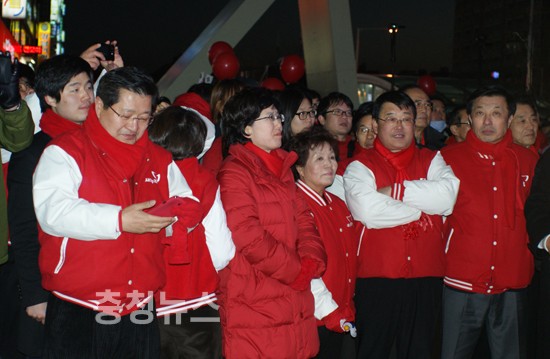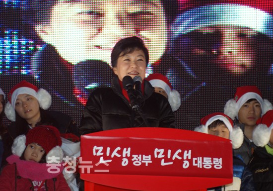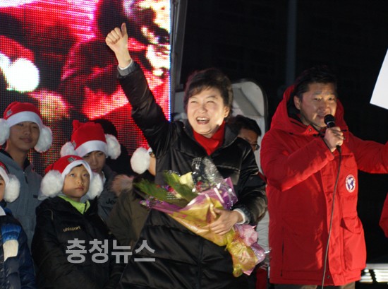새누리당 박근혜 대통령후보는 "선거운동 시작 첫 날은 대전역에서 마지막 날은 유성 노은 지하철역에서 했다. 내일 대전·충청에서 압승할 수 있도록 힘을 모아달라"고 지지를 호소했다.