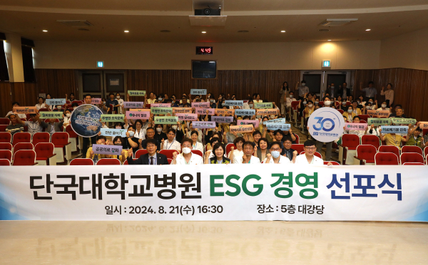 [충청뉴스 박동혁 기자] 단국대학교병원은 지난 21일 병원 대강당에서 'ESG 경영 선포식'을 열었다고 밝혔다.