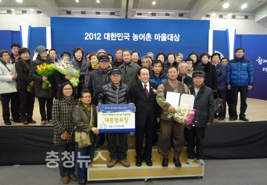아산시농업기술센터(소장 유재범)는 지난 20일 한국마사회(경기도 과천시 소재)에서 농림수산식품부가 주관하는 ‘대한민국 농어촌마을대상’ 시상식에 송악면 외암1리 외암마을(대표 이규정)이 대통령 표창을 수상했다.
