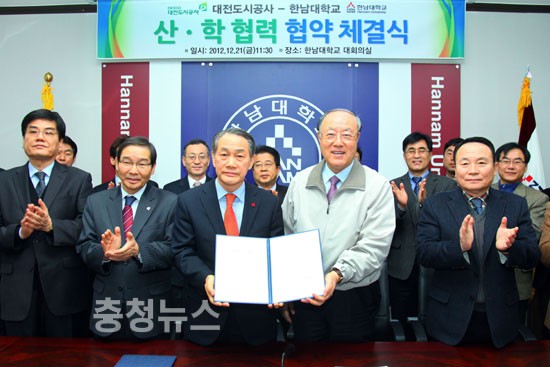 한남대학교(총장 김형태)는 21일 오전 11시 20분 대학본부 대회의실에서 대전도시공사와 산·학협력 협약 체결식을 가졌다. ▲ 한남대학교 대전도시공사와 산·학협력 협약 이번 협약을 통해 대전도시공사는 한남대학교 학생(재학 및 휴학)들을 대상으로 청년 인턴 프로그램을 운영하며, 필요시 대전도시공사의 사업 및 취업안내 설명회를 개최하기로 했다. 저작권자 © 충청뉴스 무단전재 및 재배포 금지 문요나 기자 다른기사 보기 기사가 마음에 드셨나요? 충청뉴스 좋은 기사 후원하기 1,000원 3,000원 5,000원 10,000원 30,000원 50,000원 직접입력 비회원 약관동의하기 ※ 소중한 후원금은 더 좋은 기사를 만드는데 쓰겠습니다.