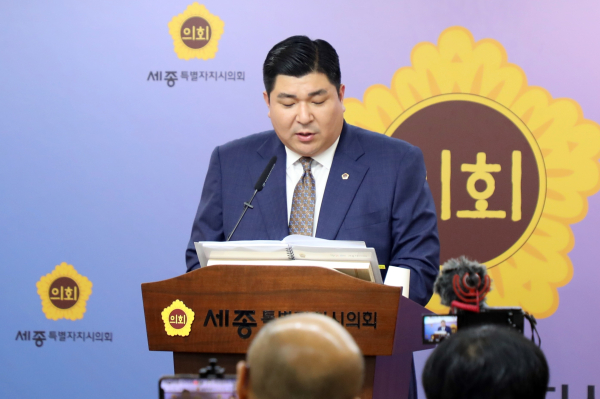 의정브리핑 하는 김영현 세종시의회 의회운영위원장