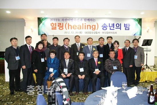 대전시 둔산경찰서(서장 신현옥) 정보보안과 보안계 에서는 지난 21일 오후 7시 서구 둔산동 오페라 웨딩홀에서 신현옥 경찰서장, 정보보안과장, 보안협력위원회30명, 경찰20명, 북한이탈주민 70명등 총130여명이 참석한 가운데 북한이탈주민들과 함께하는 '2012년 힐링 송년의 밤' 행사를 개최했다.