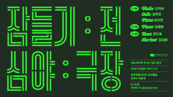 [충청뉴스 박영환 기자] 대전예술의전당(관장 김덕규)은 2024 '잠들기 전 심야극장' 마지막 무대가 오는 30일, 밤 10시 대전예술의전당 앙상블홀과 공식 유튜브 채널에서 생중계된다고 전했다.