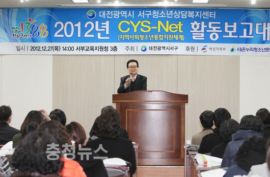 대전광역시 서구(구청장 박환용) 청소년상담복지센터(소장 김기복)는 지난 12월 27일 서부 교육청 대회의실에서 지역사회청소년통합지원체계(CYS-Net)사업 등 2012년에 추진한 사업에 대해 활동 보고대회를 가졌다.