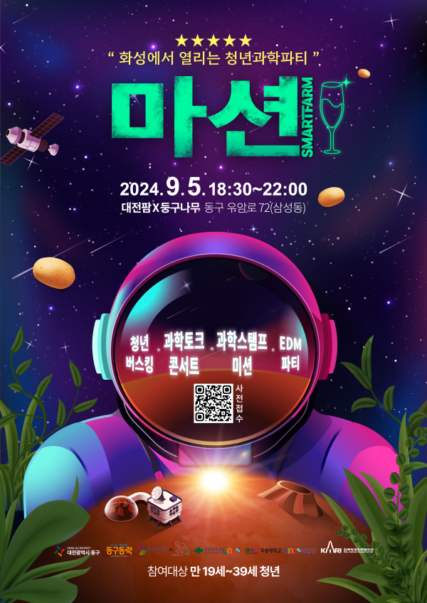 [충청뉴스 박영환 기자] 대전 동구는 청년공간 동구동락 및 대전팜과 함께 오는 5일 도심형 스마트팜인 대전팜에서 청년과학파티 ‘마션’을 개최한다고 밝혔다.