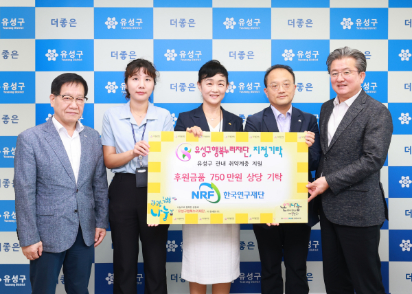 [충청뉴스 박영환 기자] 대전 유성구(구청장 정용래)는 4일 한국연구재단(이사장 이광복)이 취약계층 지원을 위해 후원금품 500만원과 온누리상품권 250만원을 유성구행복누리재단에 기탁했다고 밝혔다.