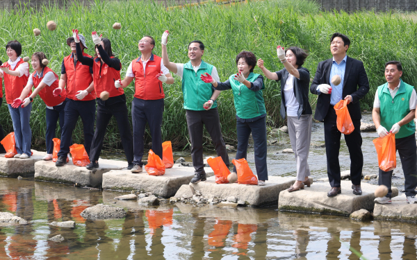 [충청뉴스 박영환 기자] 대전 동구는 5일 인동 만세로광장 인근 대전천 일원에서 지역하천 살리기 운동의 일환으로 진행하는 ‘EM흙공 던지기’ 캠페인을 개최했다고 밝혔다.