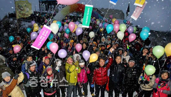 특히, 눈이 내리는 날씨에도 불구하고 식장산 KT 송신탑 해맞이 광장에 모인 3,000여명의 시민들은 새해의 소망을 풍선에 담아 하늘에 날려보내며 계사년 한 해의 안녕과 행복을 기원했다.
