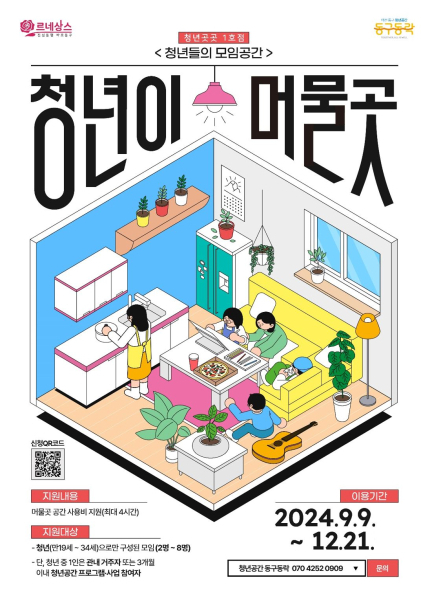이번에 지정된 ‘청년이 머물곳’은 동구 자양동에 위치한 대관 공간인 ‘머물곳’(동구 동대전로164번길 39)에 마련돼 올해 12월까지 운영되며, 청년들의 휴식과 소통의 장소로 활용될 예정이다.