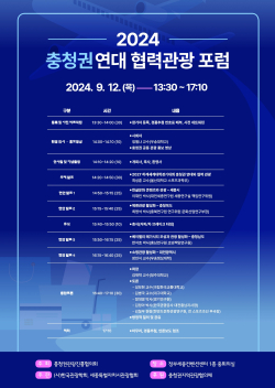 [충청뉴스 최형순 기자] 충청권관광진흥협의회가 (사)한국관광학회 공동주관으로 12일 정부세종컨벤션센터에서 ‘2024 충청권 연대협력 관광포럼’을 개최한다.