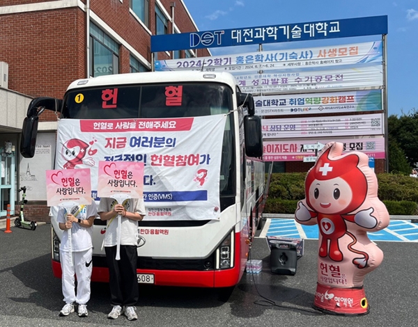 [충청뉴스 이성현 기자] 대전과학기술대학교는 간호학과 동아리 NIS가 교내 동방관 앞 주차장에서 한마음혈액원과 함께하는 ‘생명나눔 헌혈캠페인’을 실시했다고 11일 밝혔다.