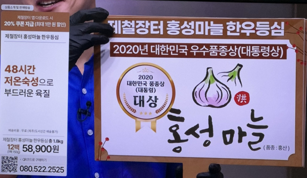 지난 6월 협약식을 갖고 홍성군과 LG헬로비전, 신선P&F가 공동으로 개발한 홍성마늘 한우등심구이가 8월 10일 론칭 후 한달 만인 9월 9일 약2억 원(3,161세트)의 판매고를 올리며 인기몰이를 하고 있다.