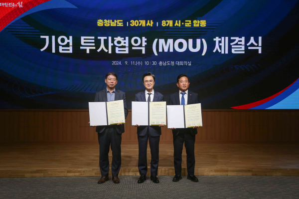 [충청뉴스 서천 = 조홍기 기자] 서천군은 지난 11일 충남도청 대회의실에서 김태흠 도지사를 비롯해 노태현 부군수, 손재호 ㈜비앤비 대표 등이 참석한 가운데 충남 합동 투자협약(MOU)을 체결했다고 밝혔다.