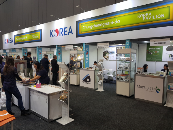 충남테크노파크와 해양수산창업투자지원센터의 해외 판로개척사업 일환으로 지원한 이번 식품박람회에는 도내 수산 분야 중소기업 6곳이 참가했다.