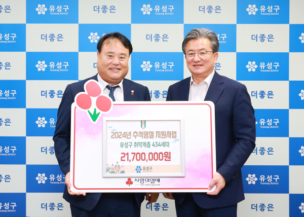 이에 정용래 유성구청장은 “이번에 전달받은 소중한 후원금은 추석을 앞둔 저소득 가정에 큰 위로와 도움이 될 것”이라며 “지원이 필요한 가구에 빠짐없이 전달될 수 있도록 최선을 다하겠다”고 말했다.