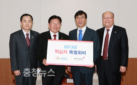 안희정 충남도지사는 7일 집무실에서 대한적십자사 대전·세종·충남지사 민경용 회장을 접견하고, 2013년도 적십자 특별회비를 전달했다.