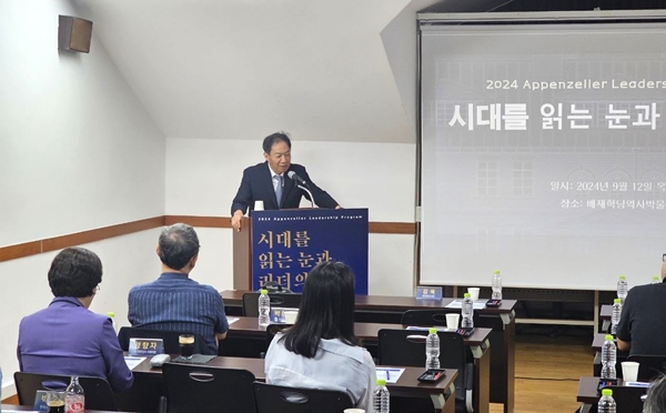 [충청뉴스 이성현 기자] 배재대학교가 서울 정동 배재학당역사박물관에서 아펜젤러 리더십 프로그램 ‘시대를 읽는 눈과 리더의 말’을 성황리에 개강했다고 13일 박혔다.