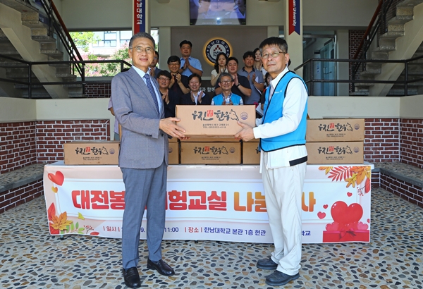 대전봉사체험교실 장인수 자문위원장은 13일 한남대를 방문해 용역직원들을 위한 육류(500만원 상당)를 이승철 총장에게 전달했다.